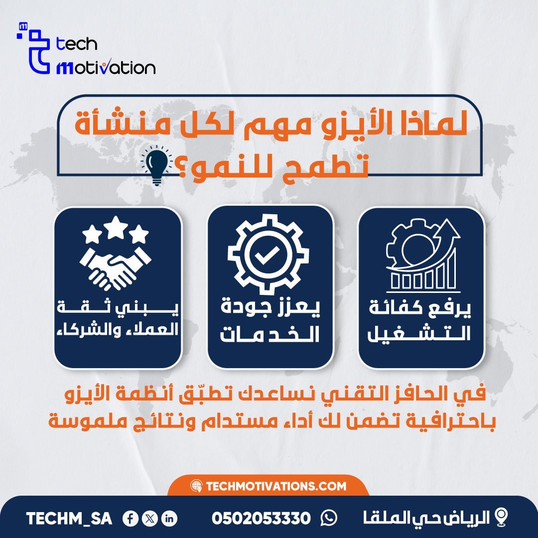 في الحافز التقني.. نُعزّز ثقافة السلامة ونبني بيئة عمل آمنة ومستدامة 💪 السلامة ليست مجرد لوائح أو تعليمات، بل هي قيمة أساسية تضمن استمرارية العمل وتحافظ على أهم مورد تمتلكه أي منشأة: العنصر البشري.ومن هذا المنطلق، تعمل الحافز التقني على تمكين عملائها من تطبيق نظام إدارة الصحة والسلامة المهنية ISO…